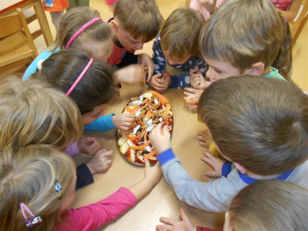 Jsme rádi, že naše MŠ je zařazena do projektu ZDRAVÁ MATEŘSKÁ ŠKOLA. Na zřeteli máme požadavek pestré, vyvážené a plnohodnotné stravy, odpovídající potřebám vyvíjejícího se dětského organismu. Respektujeme individuální potřebu jídla a dodržujeme pitný režim. Do jídelníčku jsou zařazovány stále nové potraviny. Udržujeme zvýšený příjem čerstvého ovoce a zeleniny.